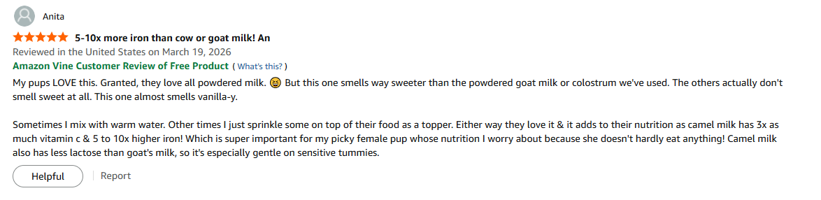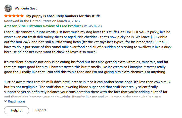 If you have a dog with a sensitive stomach who misses out on treats, or a senior dog who needs a nutritional boost, camel milk is absolutely worth a shot. It’s a cleaner, more bioavailable option than almost any other dairy out there. However, if your dog is doing perfectly fine on their current diet, you don’t need to buy it. It’s a premium addition that’s great for wellness, but not a mandatory part of being a good dog owner.