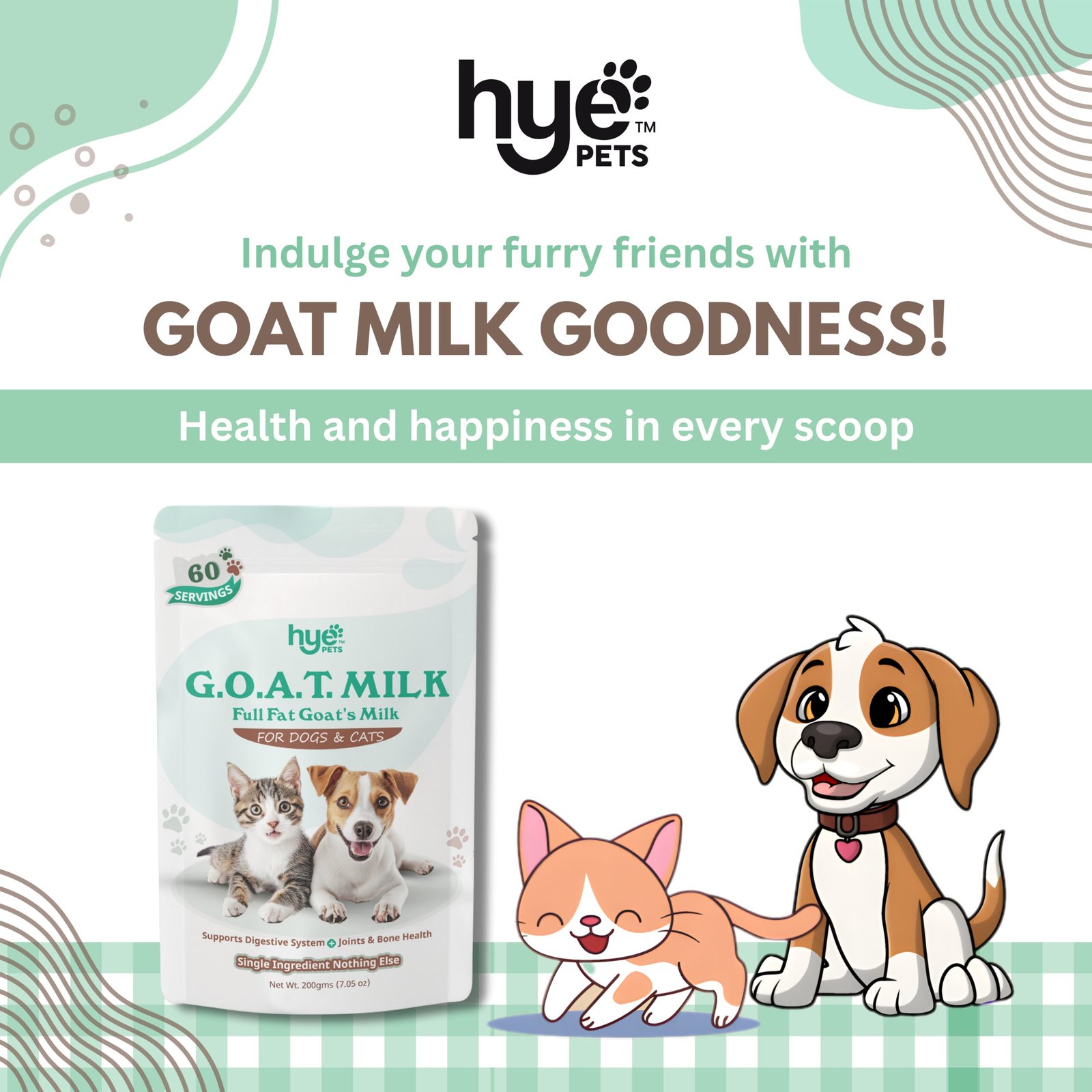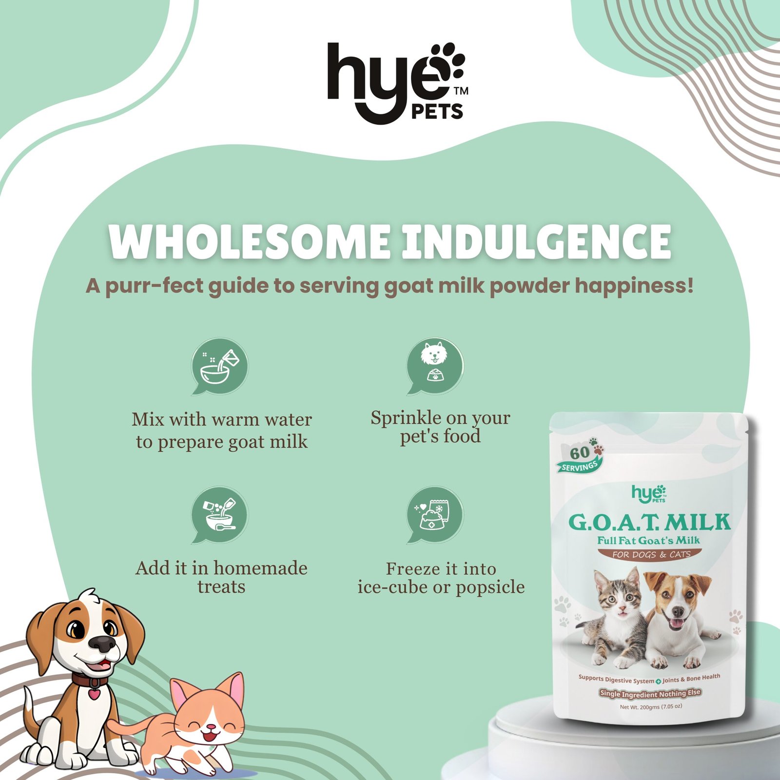 Give your pets superior nourishment with HYE Pets Full Fat Goat Milk Powder, specially formulated for dogs and cats. Rich, creamy, and naturally nutritious, this full-fat goat milk offers enhanced energy, better digestibility, and improved absorption of essential nutrients. Packed with healthy fats, calcium, vitamins, and minerals, it supports bone strength, digestive comfort, and overall vitality.